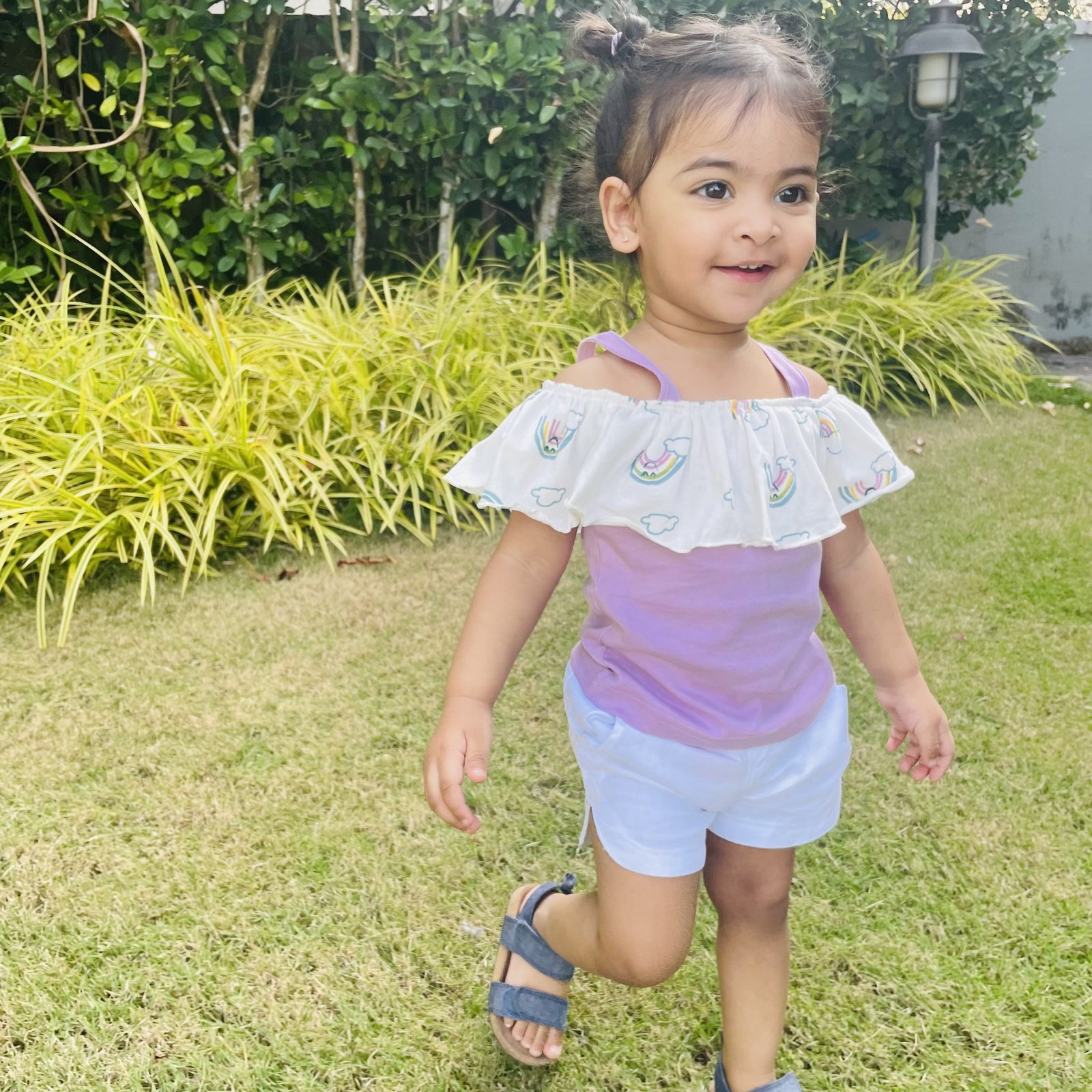 Style your diva in this breezy cold shoulder top & super comfortable shorts !