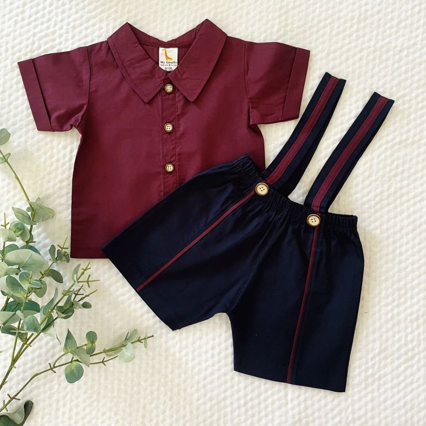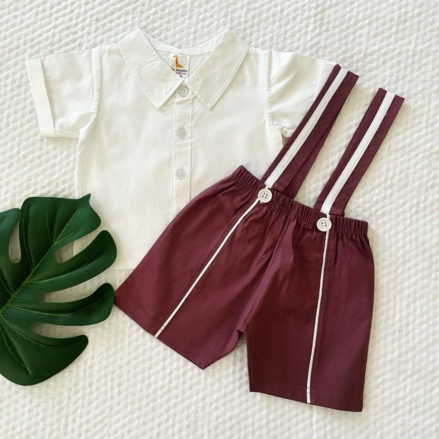 Introducing our stylish collared shirt crafted from premium poplin and twill fabrics, designed with the utmost comfort and style in mind for your baby boy. This charming shirt features a classic collar, adding a touch of sophistication to any outfit. The contrasting piping on the suspenders adds a playful and unique twist, perfect for any special occasion or casual outing. Made with high-quality materials, our suspender with piping ensures durability and a secure fit, allowing your little one to move freely and comfortably. Whether it’s a family gathering or a day out, your baby boy will look adorable and fashion-forward in this versatile ensemble.