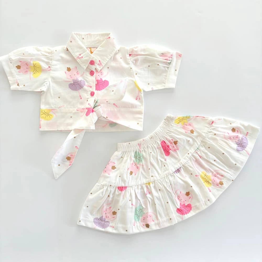 Dress your little one in charm and comfort with our adorable Collared Tying Top with Puff Sleeves & Skirt Co-Ord Set. Designed for playful days and picture-perfect moments, this stylish ensemble features a cute collared top with puff sleeves and a front tie-up detail, paired with a matching skirt for a coordinated look.