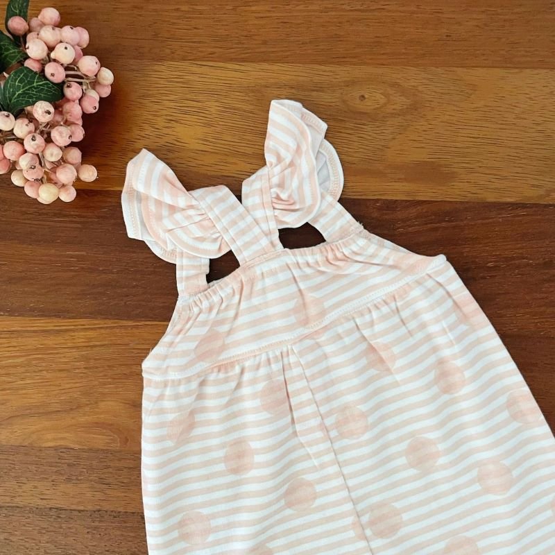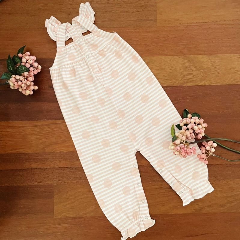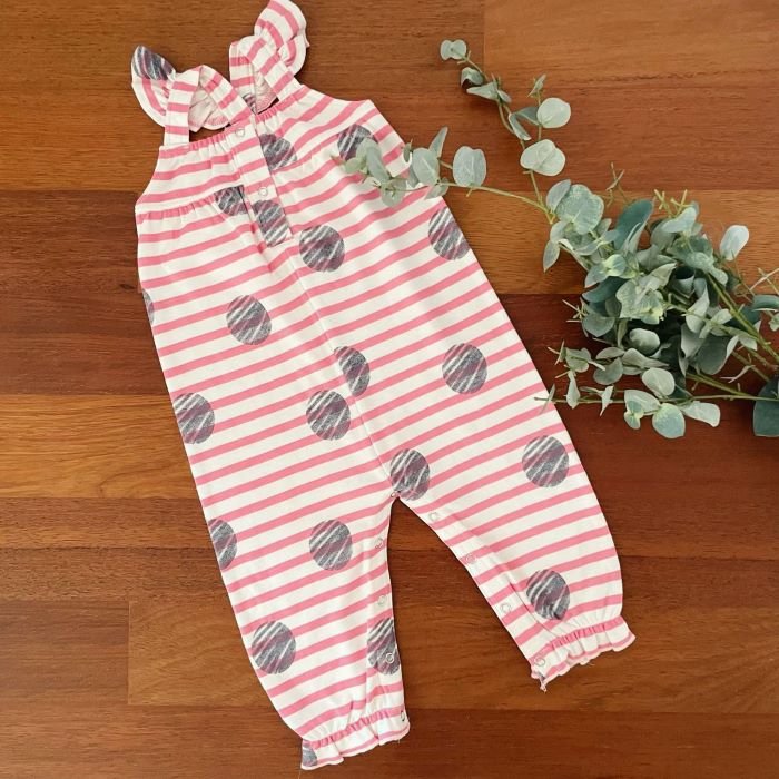 Introducing our Criss Cross Jumpsuit: Elevate your little one’s style with this trendy and comfortable jumpsuit. Featuring eye-catching stripes and prints , it’s not only fashionable but also designed for easy wearing thanks to the convenient snap button fastening. Make dressing up a breeze with this must-have addition to your baby’s wardrobe!