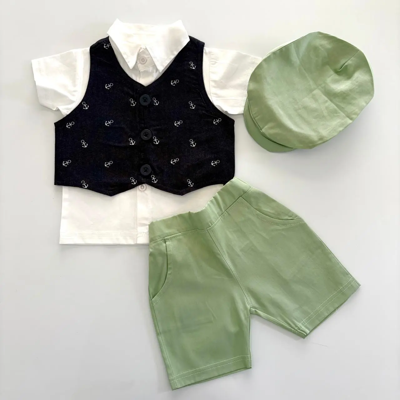 Dress your little one in style with this classic denim waistcoat & cap set, paired with a poplin cotton shirt and twill cotton shorts for all-day comfort.