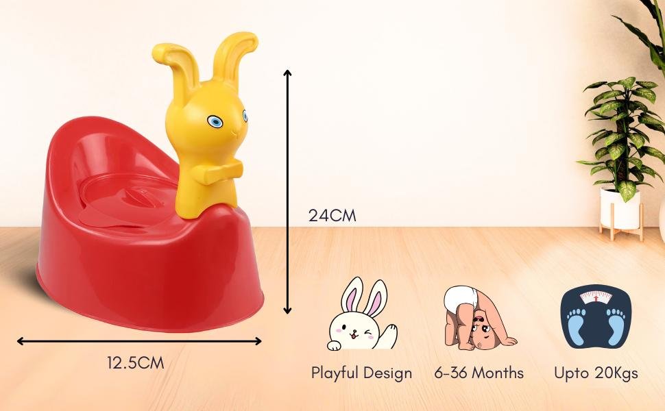 My Giraffe’s Kids Baby potty is perfect for your little one’s potty training. The smooth plastic without any extra layers will avoid pinching of your baby’s soft skin. This potty is  perfect for children in the age group of 6-36 months, weighing up to 20 kgs. Made from 100% Virgin Plastic it’s 100% Hygienic. The smooth plastic doesn’t allow the poop to get lodged on the surface and it is super easy to clean. The rabbit head on the potty will add to the fun of your baby’s potty experience and your child will be looking forward to going on the potty than be afraid of the new change in routine.
