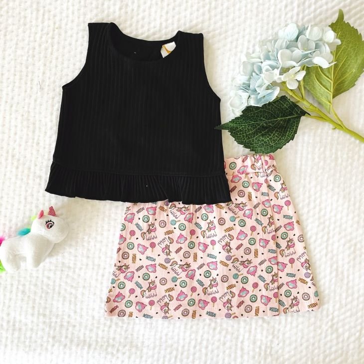 Frill Criss Cross Top and Unicorn Skirt