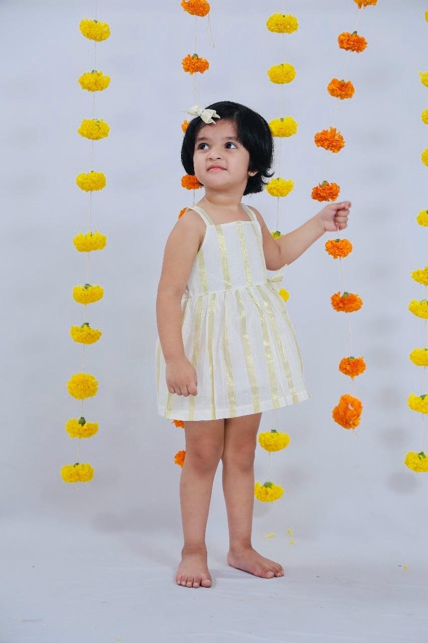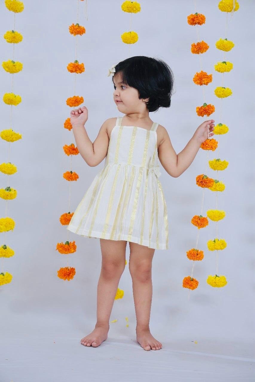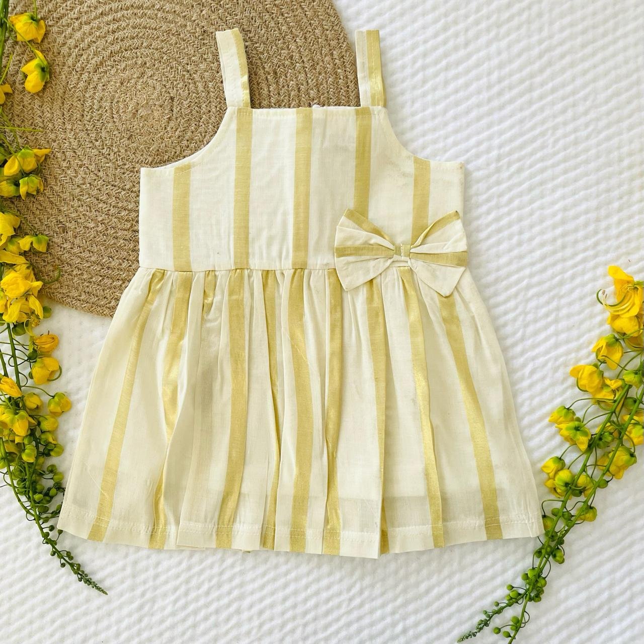 Introducing our charming Kasavu bow dress for baby girls, available in delightful checks and timeless stripes patterns. Crafted with the finest quality Kasavu cotton, this dress promises both comfort and elegance for your little one. The classic bow detail adds a touch of sweetness to the ensemble, making it perfect for special occasions or everyday wear. With its breathable fabric and adorable design, this dress will surely become a cherished addition to your baby girl’s wardrobe.