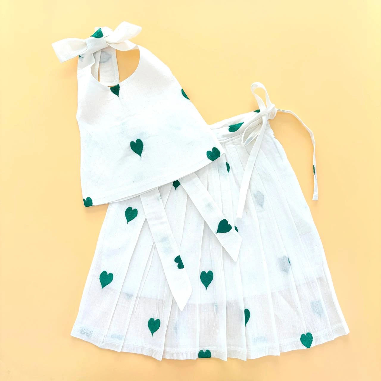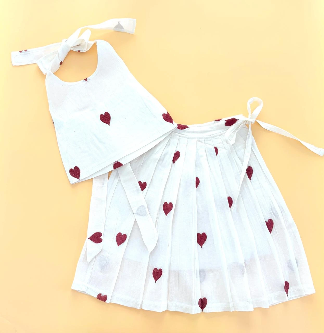 Khadi Hearts Embroidered Back Tying Top and Skirt