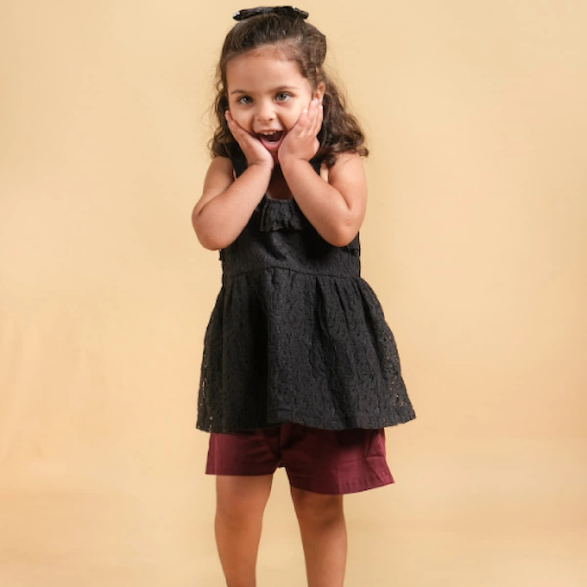 A charming blend of elegance and comfort, this baby girl set features a beautifully detailed long lace top with soft 100% knit cotton lining for extra comfort. Paired with durable twill shorts, it’s perfect for special days and everyday play. Easy to wear and irresistibly cute!