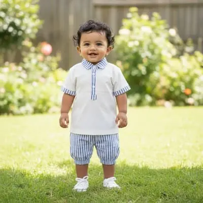 Mandarin Collared Shirt & Striped Shorts