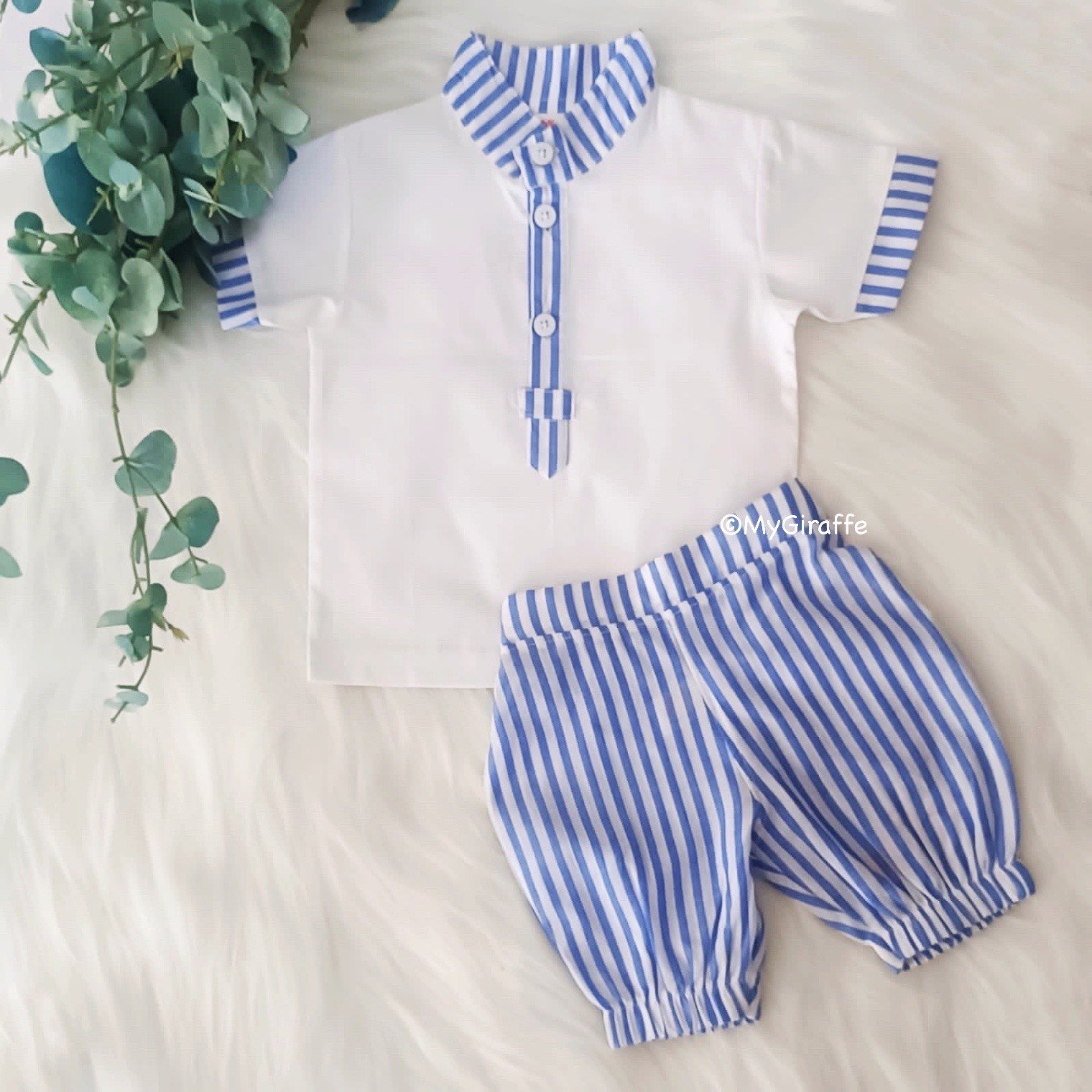 Be the first to review “Mandarin Collared Shirt & Striped Shorts” Cancel reply