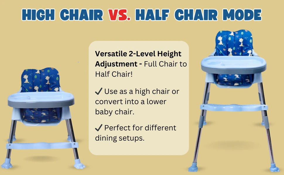 ✔ Switch between high chair mode and half chair mode for different dining setups.