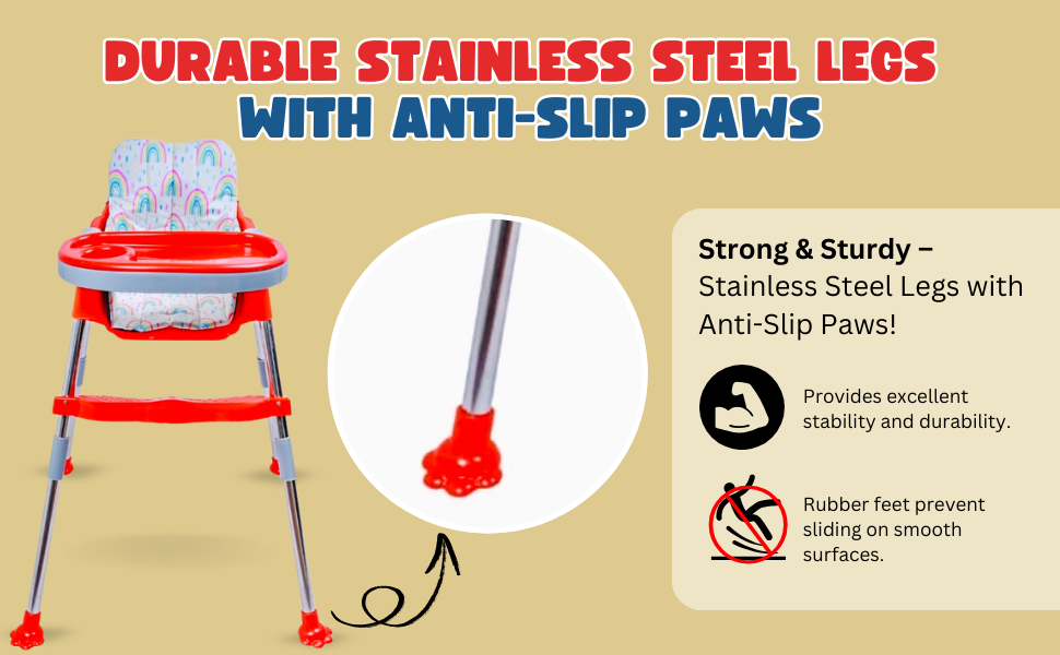 What sets this dining chair apart is its innovative footrest feature. The adjustable footrest provides optimal leg support, allowing your little munchkin to sit comfortably and maintain proper positioning while enjoying their favorite meals. It ensures your baby’s tiny feet are well-supported, promoting a relaxed and enjoyable dining experience.