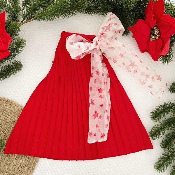 Be the first to review “Pleated Dress with Star Print Organza Tie”