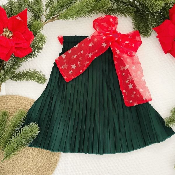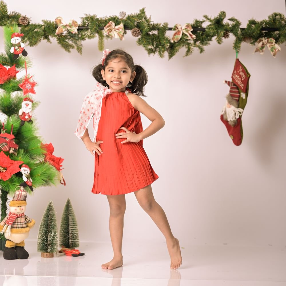 Dress your baby girl in adorable elegance with our Pleated Dress featuring a star-print organza tie. This charming ensemble combines timeless style with comfort, showcasing delicate pleats that add a touch of sophistication. The star-print organza tie adds a whimsical flair, creating a delightful contrast. Crafted with care, this dress ensures both comfort and style for your little one, making it the perfect choice for special occasions. Let your baby girl shine bright in this enchanting outfit that captures the magic of childhood.