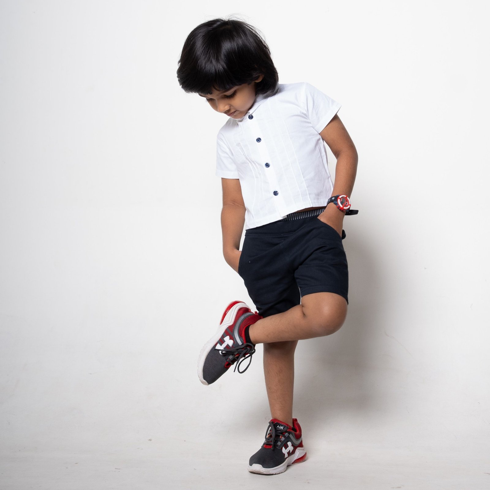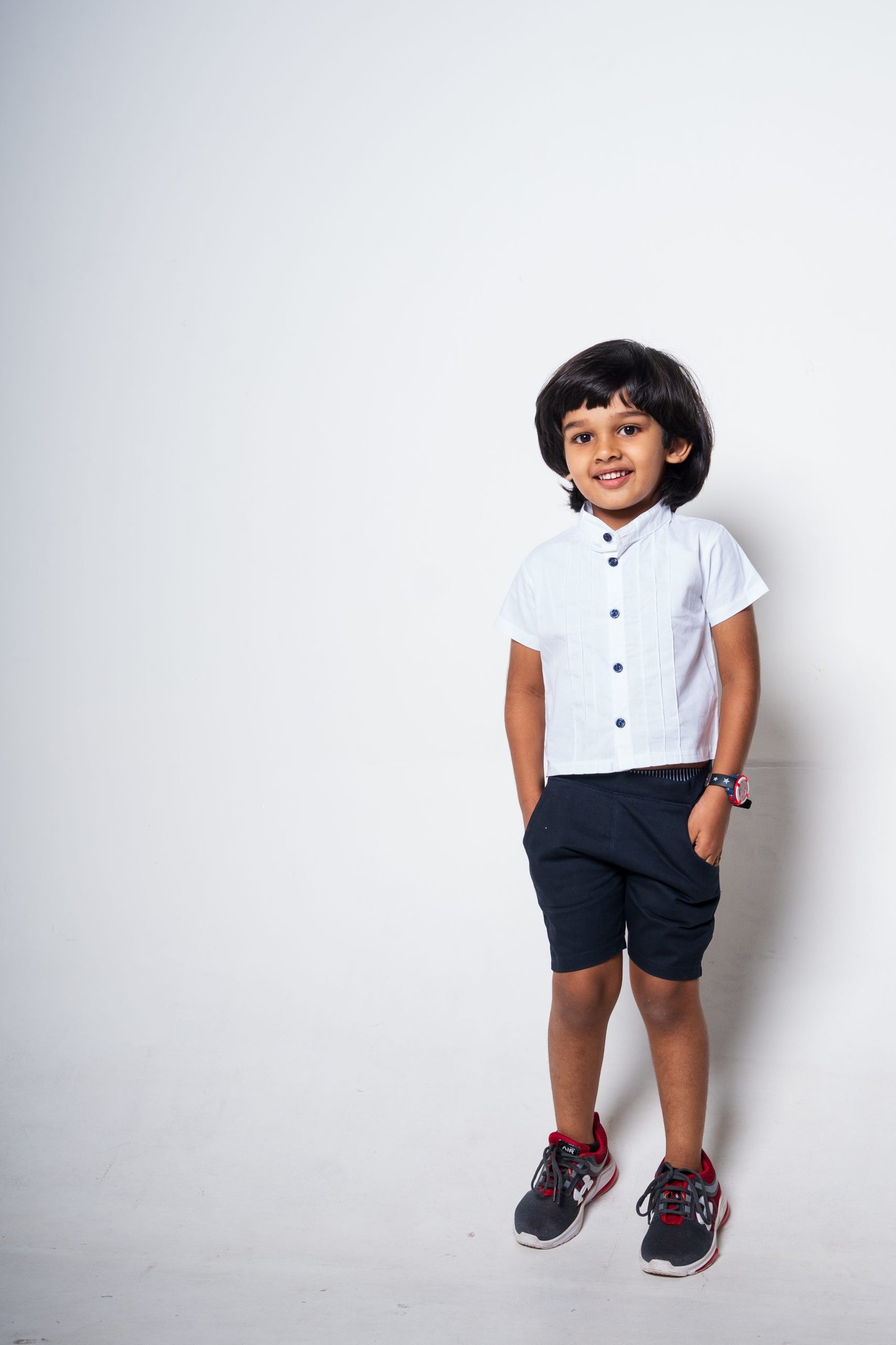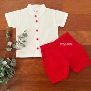 This cute outfit comes with contrast buttons and little pleats for your little man. The shorts comes with a small elastic in the back for the perfect snug fit