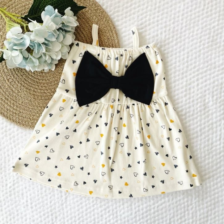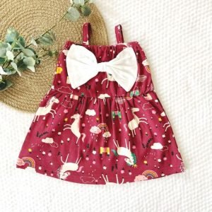 Introducing our charming baby girl dress – a delightful fusion of style and comfort! This printed big bow dress features adorable prints, complemented by dainty spaghetti straps for a fashionable touch. Crafted with care, it ensures your little one stays both cute and cozy on any occasion.