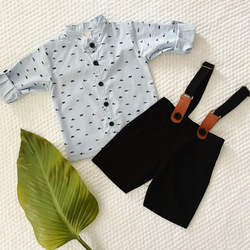 Dress your little one in style with our Printed Mandarin Full Sleeve Shirt and Shorts Suspender set, featuring elegant leather detailing. This outfit includes a breathable, printed cotton shirt and matching shorts with faux leather-accented suspenders. Ideal for special occasions and everyday wear, it combines comfort and charm, with easy-care instructions to keep it looking great.