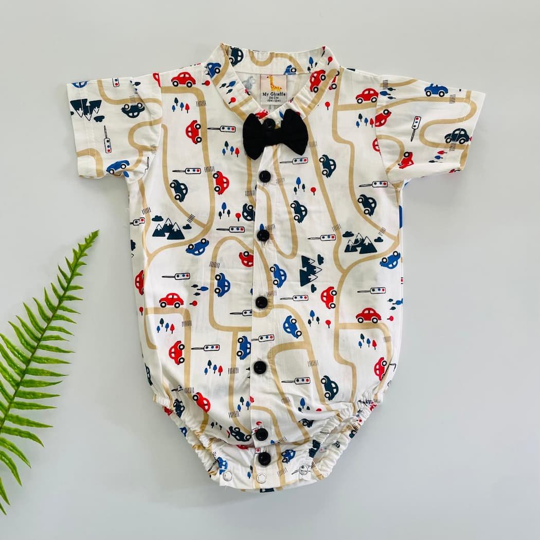 Introducing our adorable Printed Poplin Onesie with Bow – the perfect addition to your baby boy’s wardrobe. Crafted with comfort and style in mind, this onesie features Velcro fastening put Velcro / Snap button fastening for quick and easy diaper changes, ensuring both your baby’s and your convenience.