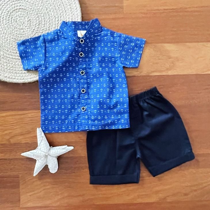 Introducing our Printed Front Open Shirt and Twill Shorts set for baby boys – a delightful blend of style and comfort. The front-open shirt showcases a charming print, making dressing up a breeze. Paired with soft twill shorts for maximum mobility, this ensemble ensures your little one stays both fashionable and at ease. Elevate their wardrobe with this effortlessly cute and practical outfit!