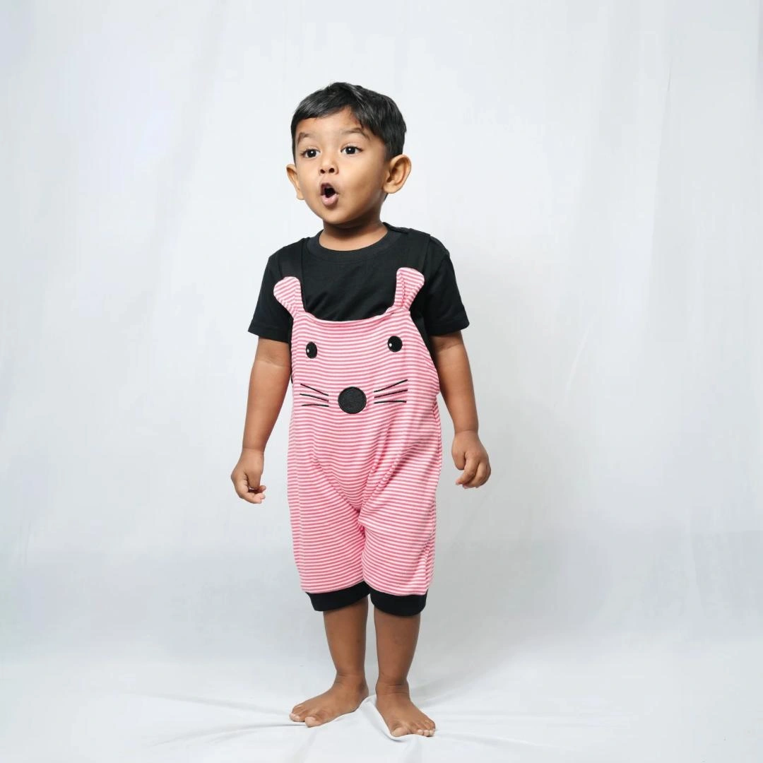 Adorable and comfy, this rabbit-embroidered ribbed striped romper and tee set is perfect for your baby boy. Featuring soft, breathable fabric and convenient snap buttons for easy changes, it’s a charming and practical addition to your little one’s wardrobe. Perfect for everyday wear or special occasions!