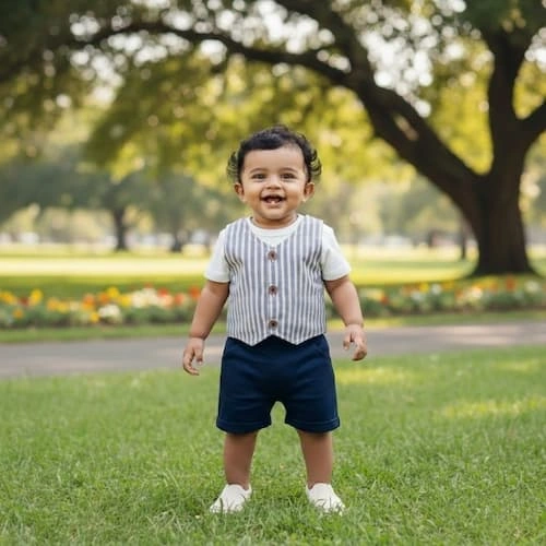 Striped Waistcoat with Tee & Twill Shorts