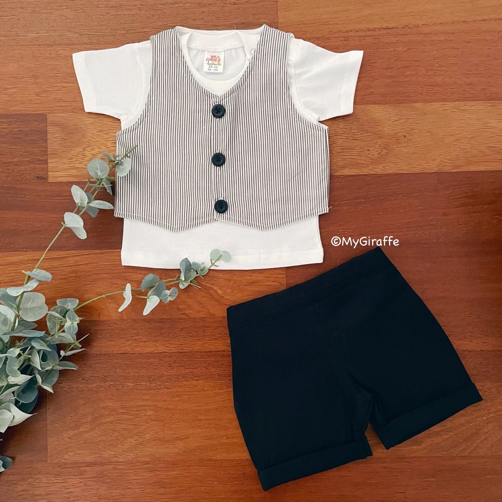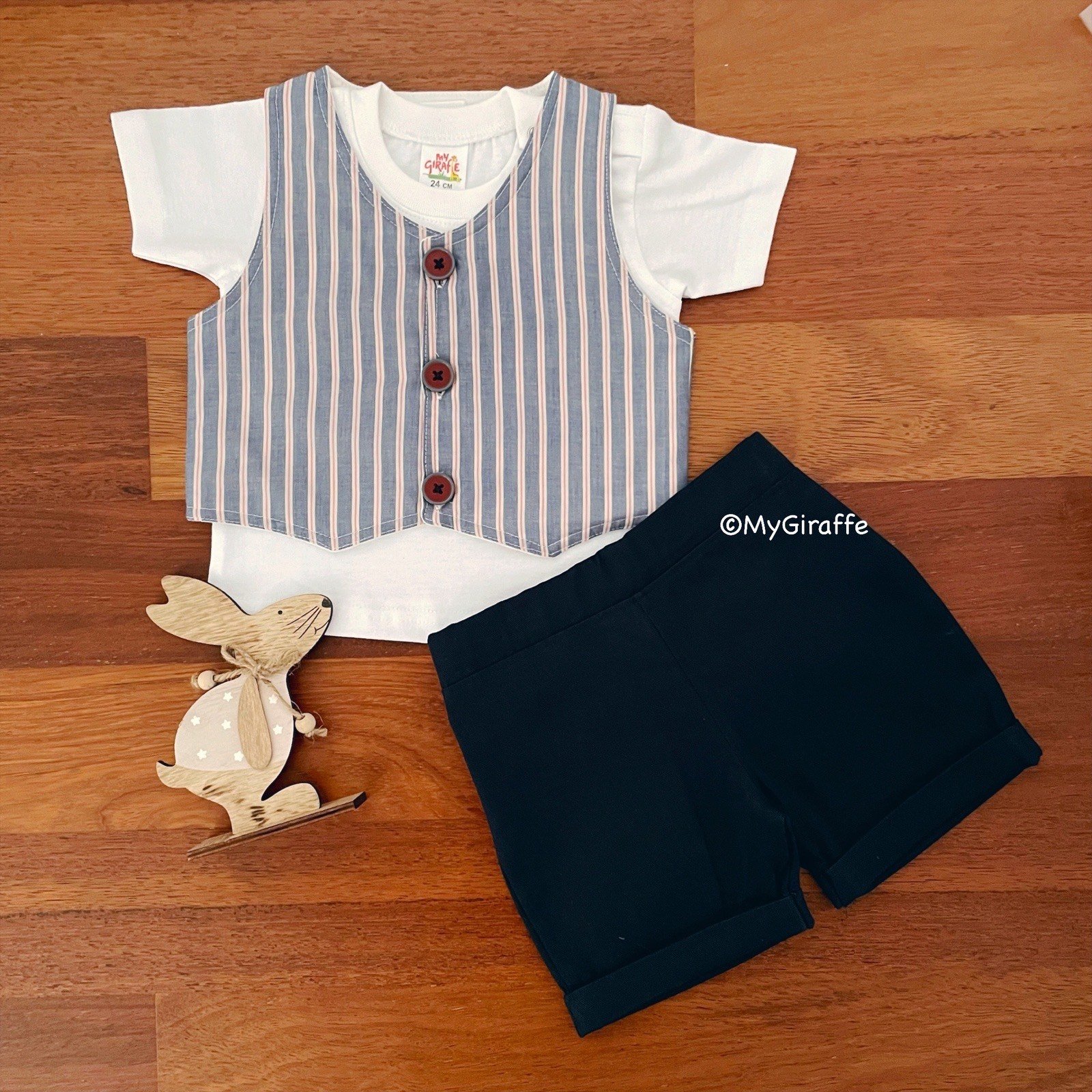 Be the first to review “Striped Waistcoat with Tee & Twill Shorts” Cancel reply