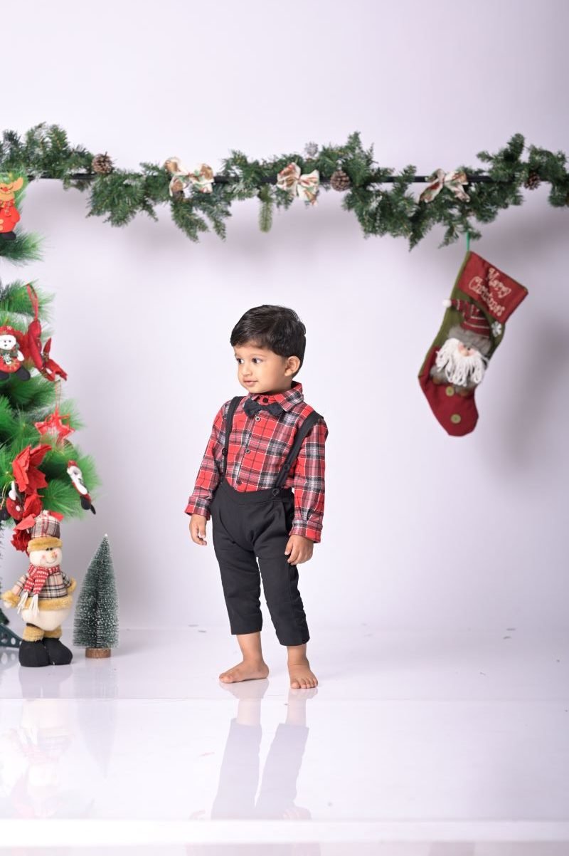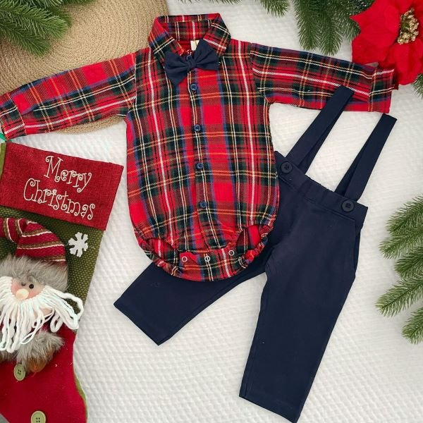 Dress your baby boy in adorable charm with our Tartan Onesie paired with Suspender Pants. The tartan onesie adds a festive touch with its timeless pattern, while the suspender pants bring a playful and stylish element. Crafted for both comfort and cuteness, this ensemble is perfect for any occasion, from holiday gatherings to everyday adventures. Let your little one showcase his festive spirit in this cozy and charming tartan onesie with suspender pants, combining classic style with a hint of whimsy.
