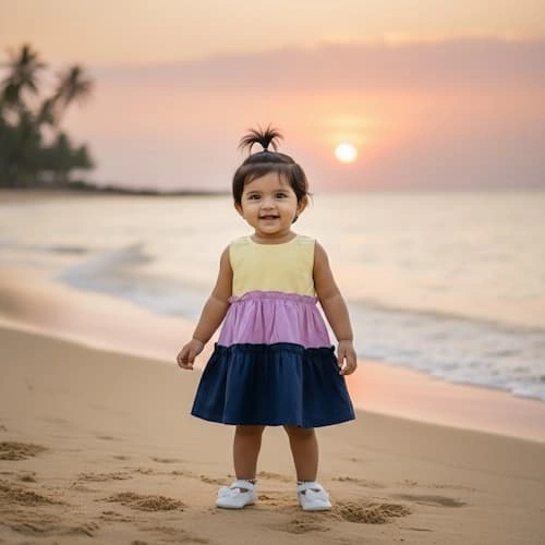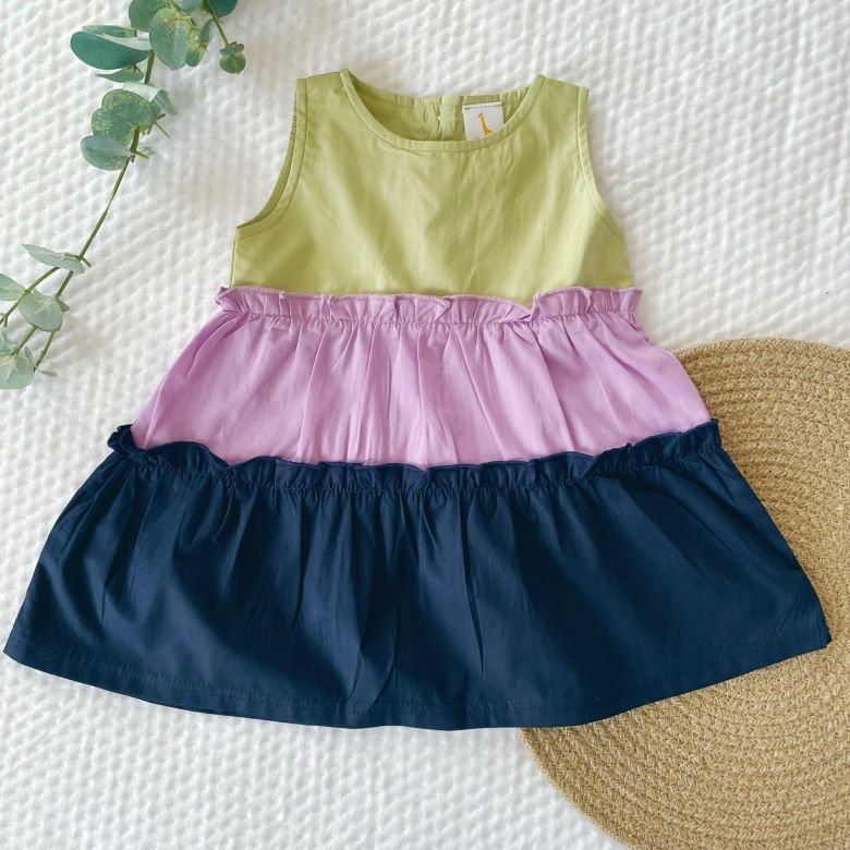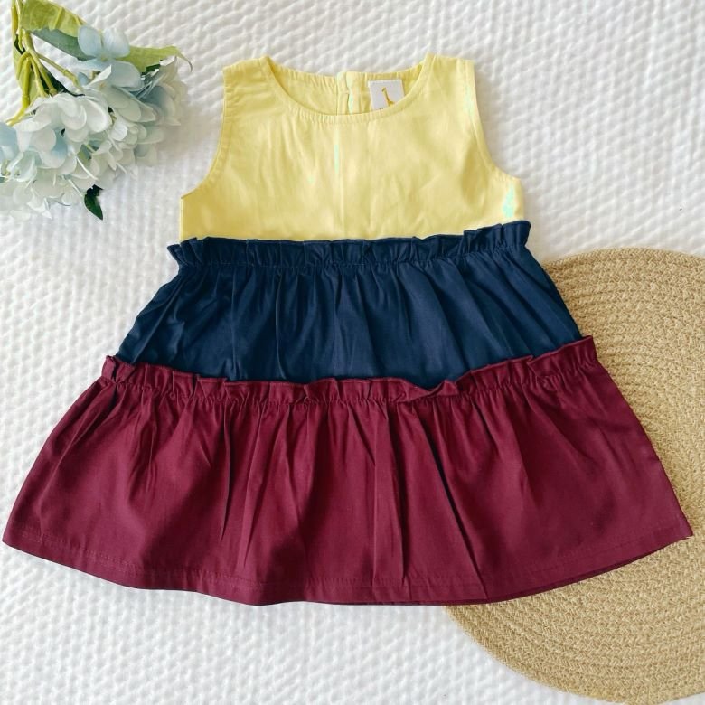 Introducing our charming Poplin Cotton Three Tier Color Block Dress, tailored specifically for your little princess! Made from soft and breathable poplin cotton, this delightful baby girl dress features three tiers of vibrant colors, ensuring both comfort and style.Designed with your baby girl’s comfort in mind, this dress is perfect for any occasion, whether it’s a family gathering or a day out with friends. With its playful design and high-quality fabric, this dress is sure to become a favorite in her wardrobe.