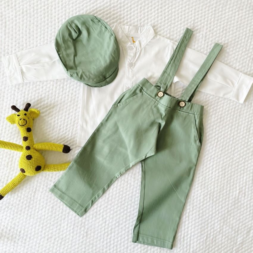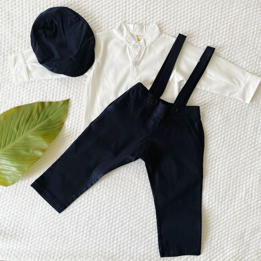 Discover the epitome of baby boy fashion with our exquisite Twill Suspender Pants paired harmoniously with a refined Mandarin Full Sleeve Shirt and Cap ensemble. Designed to captivate hearts and turn heads, this ensemble exudes sophistication and charm for your little gentleman. Crafted from premium-quality materials, each piece ensures optimal comfort and style, making it perfect for any special occasion or casual outing. Elevate your baby boy’s wardrobe with this timeless and elegant set, ensuring he shines with every step. Experience luxury and refinement with our meticulously crafted ensemble.